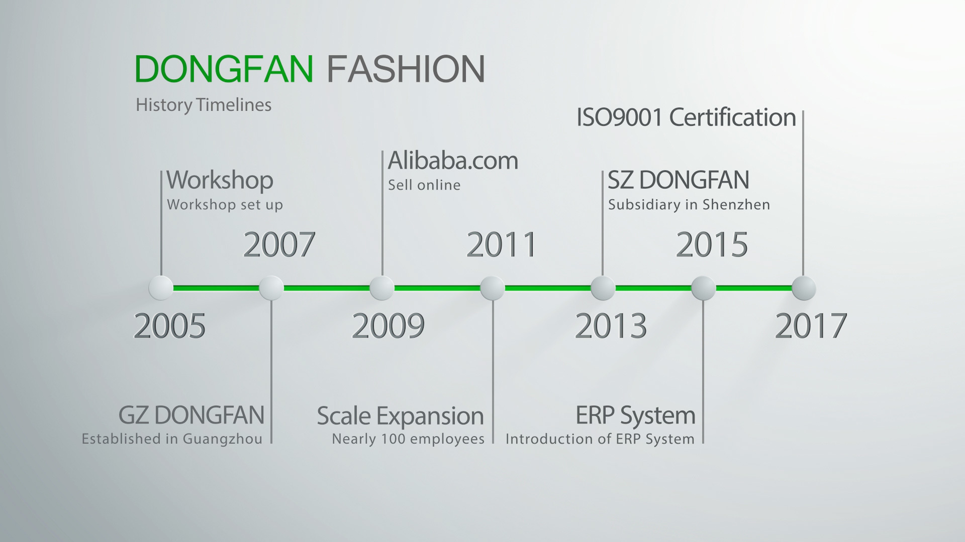 Founded in 2007, Guangzhou Dongfan Garment Factory has experienced a rapid and successful growth over the past 9 years.